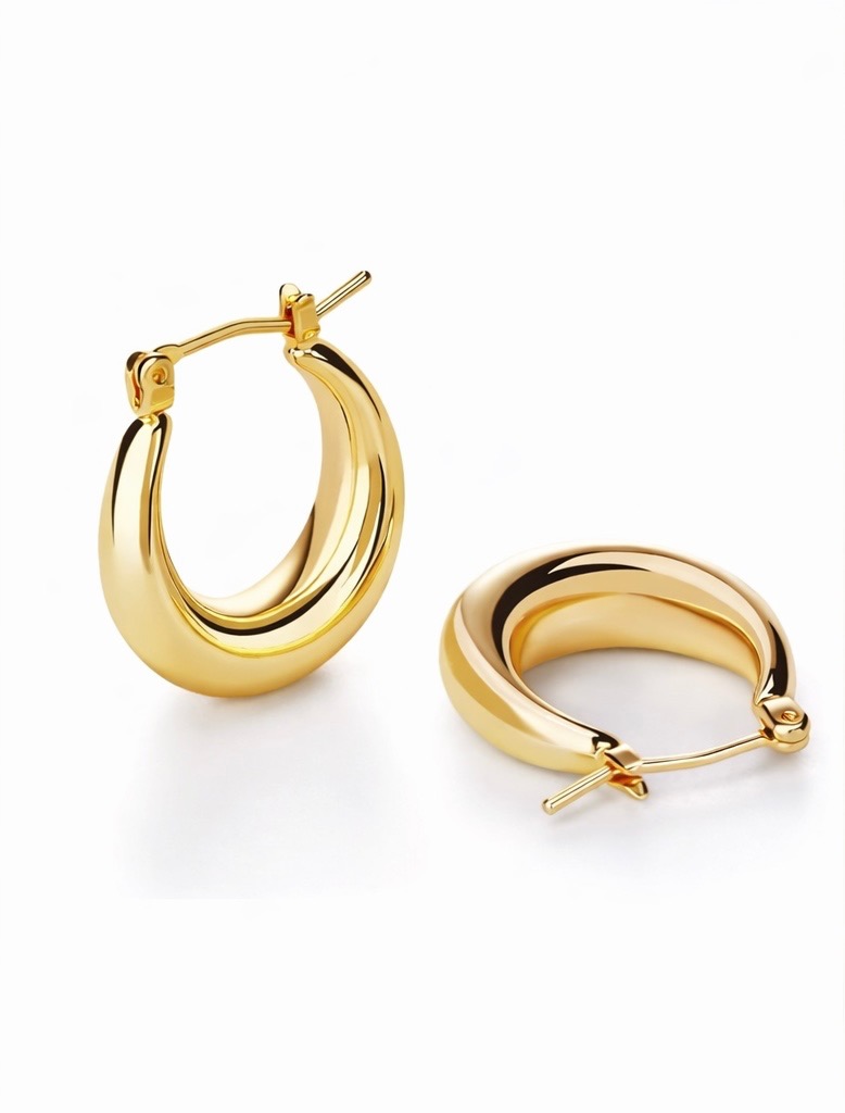 Minimalist chunky gold hoop earrings designed for everyday comfort and effortless style. Lightweight and easy to wear with a secure click-top closure. Made with hypoallergenic stainless steel posts and real gold plating to protect sensitive ears. Elegant, versatile, and perfect for daily wear or as a thoughtful gift.