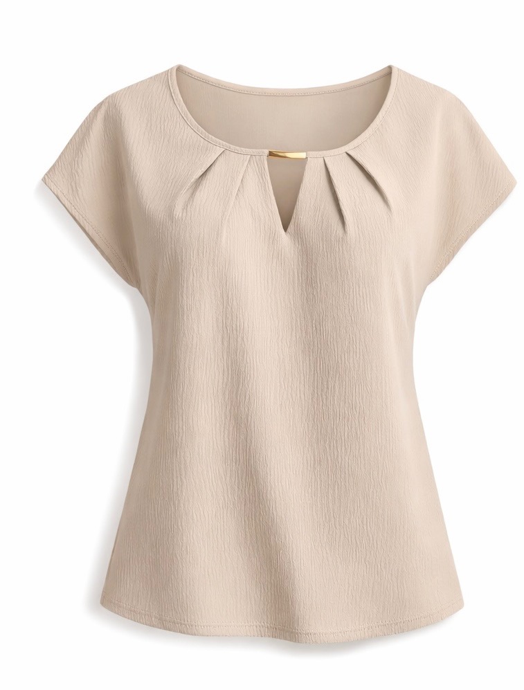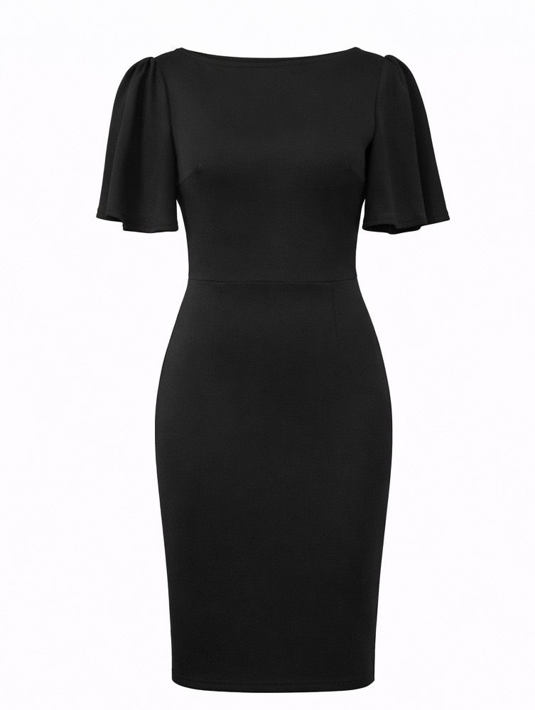 A polished midi dress designed for professional elegance and everyday sophistication. Made from a soft and stretchy rayon-polyester blend, this dress offers comfort while defining the silhouette. Featuring ruffle ruched short sleeves, a classic crew neckline, and a back zipper closure, it creates a refined and flattering look that transitions easily from office meetings to formal occasions.