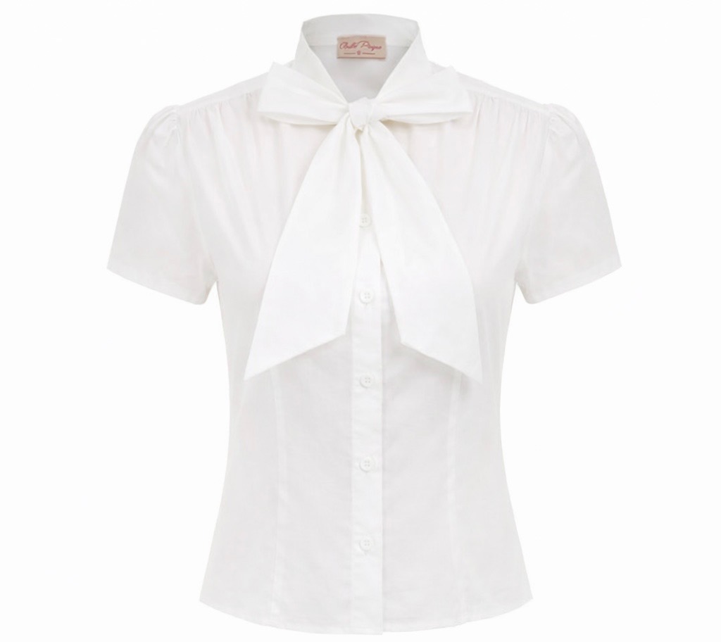 A vintage-inspired blouse designed with a sophisticated high neckline and elegant bow tie detail. Featuring short sleeves and a slim fit silhouette, this lightweight and breathable top offers a polished and feminine style. Perfect for office wear, formal occasions, or casual outfits when paired with skirts, trousers, or jeans.