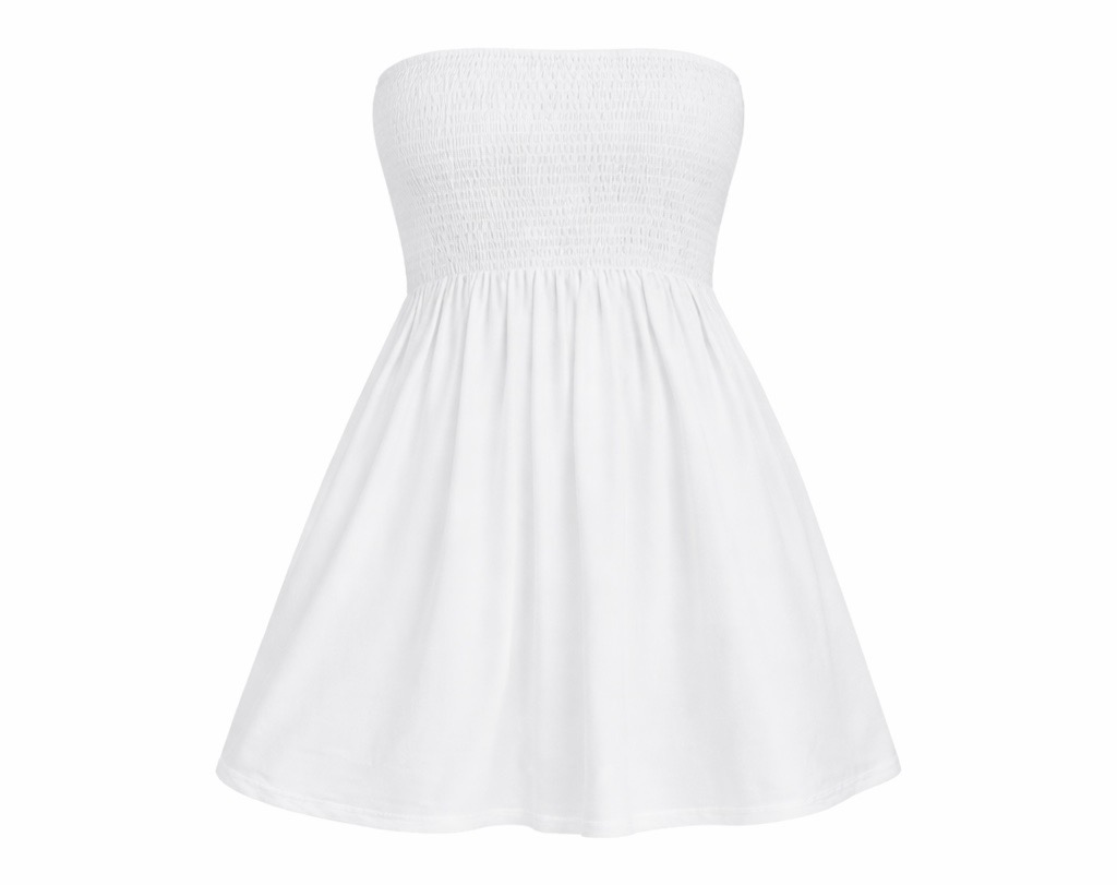 A breezy strapless sundress designed for relaxed summer style and beach vacations. Featuring an off-shoulder wrap neckline, elastic ruched back, and a flattering swing hem, this lightweight dress offers comfort and effortless elegance. The bohemian-inspired design and colorful prints make it perfect for beach days, casual outings, or vacation evenings.