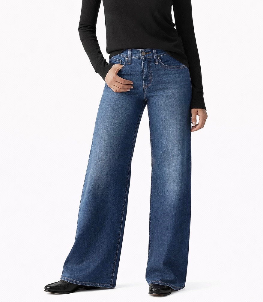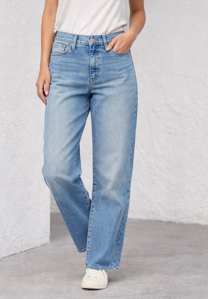Stylish high-rise wide leg jeans designed to flatter and elongate your silhouette. Made from mid-stretch denim with a comfortable cotton and lyocell blend, these jeans offer a soft feel and flexible fit. Fitted at the waist and relaxed through the leg, they create a modern wide-leg look while maintaining everyday comfort.