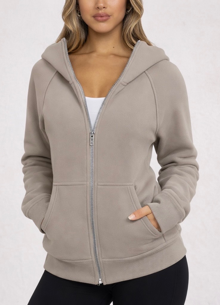 A cozy zip-up hoodie designed for everyday comfort and casual style. Made from a soft cotton-polyester blend, this fleece jacket provides warmth while remaining lightweight and breathable. Featuring a full-zip front, fixed hood, and convenient front pockets, it’s perfect for layering during fall and winter or wearing on casual outings and travel days.