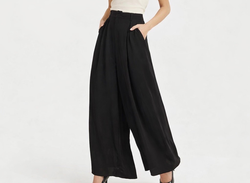 Flowy high-waisted wide-leg pants designed for effortless comfort and a polished business-casual look, perfect for work or everyday wear.