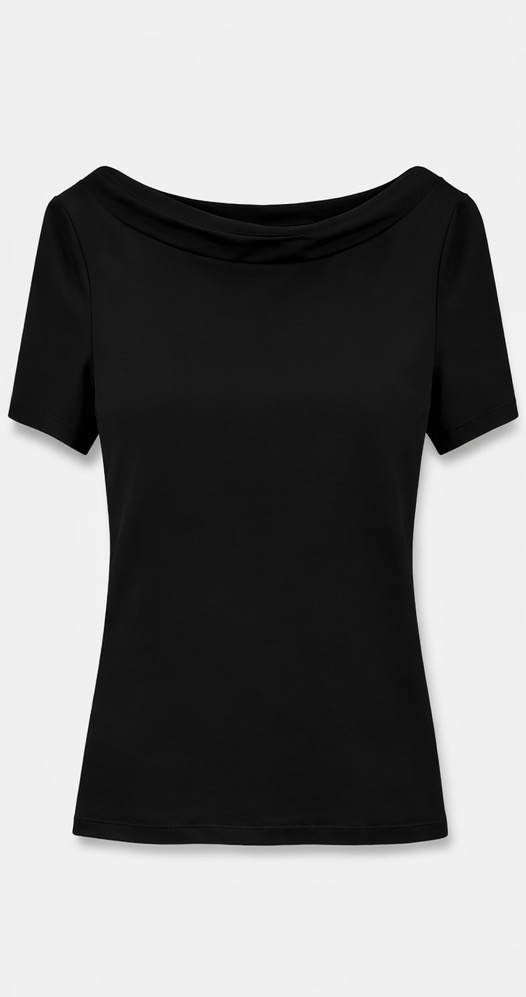 A timeless slim-fit T-shirt designed with a classic boat neckline and short sleeves for a clean, minimalist look. Crafted from a soft blend of cotton, modal Tencel, and elastane, this lightweight jersey top offers comfort and flexibility while maintaining a flattering silhouette. Perfect for casual outfits, city looks, or layering with jackets and blazers.